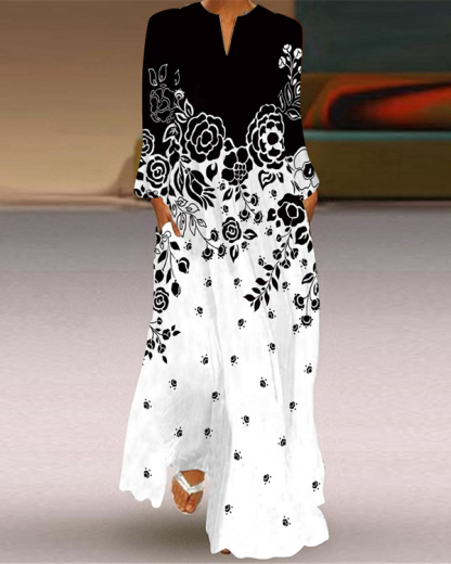 Women's Elegant Long Sleeve Flower Print Casual Dress