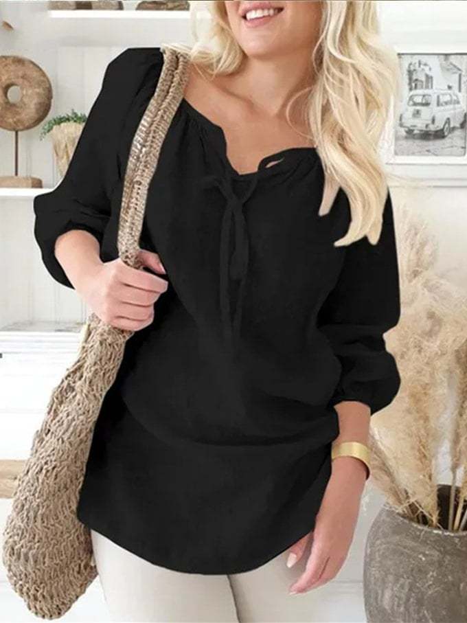 Women's Loose Casual Tether Neck Elastic Sleeve Top