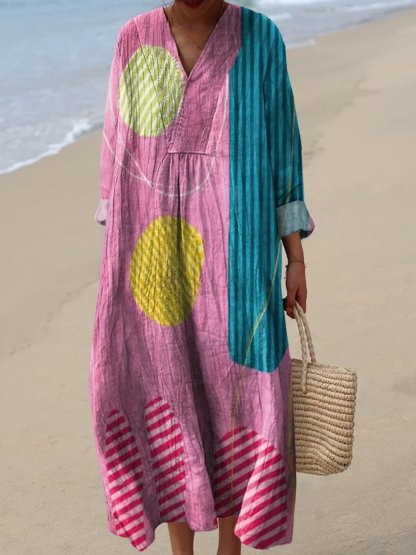 Women's Pink Abstract Art Rich Texture Modern Bold Lines Art Print Flowy Dress