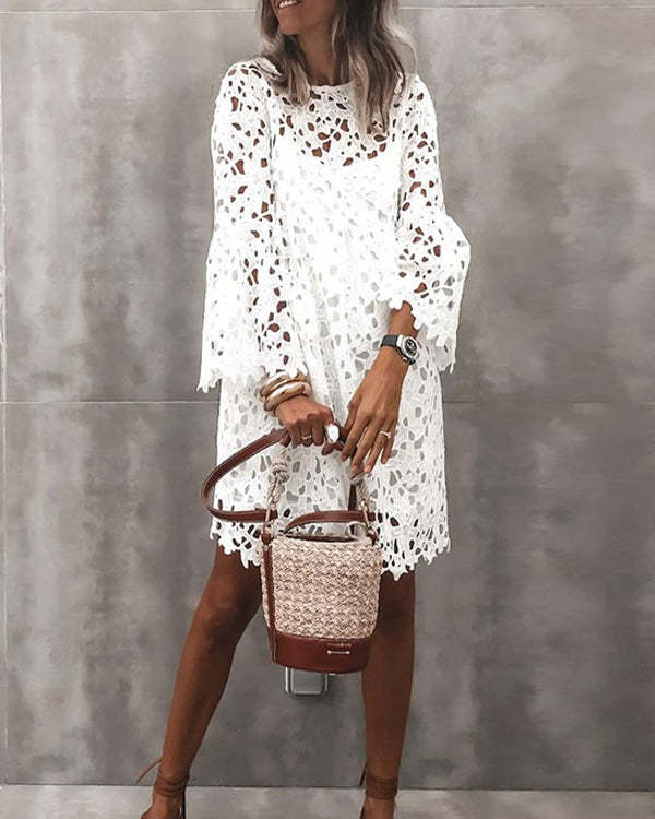Women's Sheath Dress Long Sleeve Solid Color Lace Hollow Dress