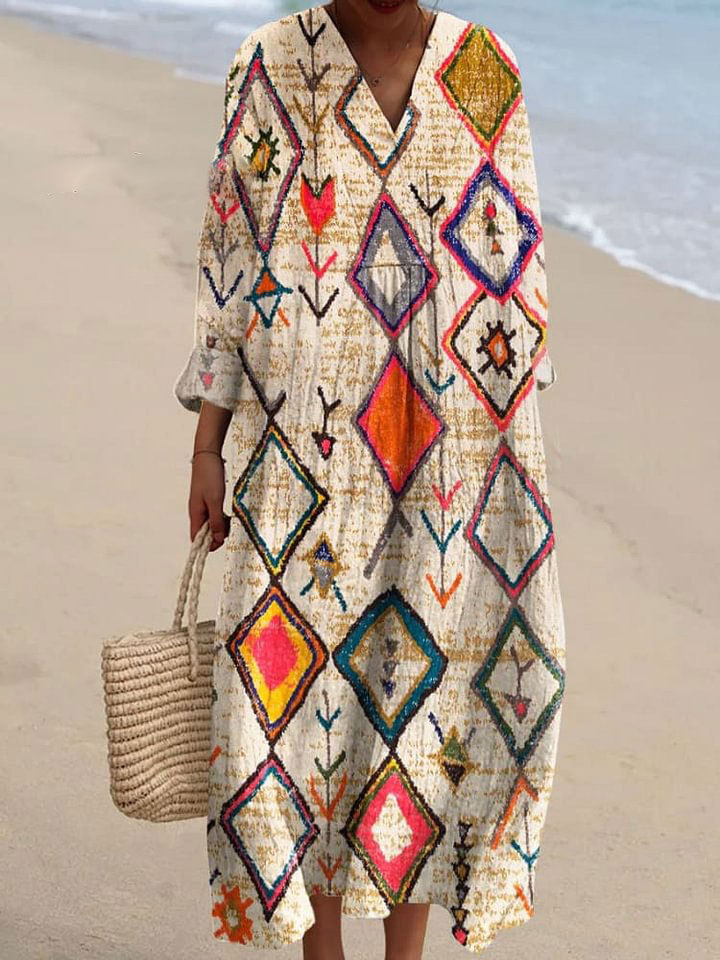Women's Vintage Geometry Line Art Print Flowy Dress