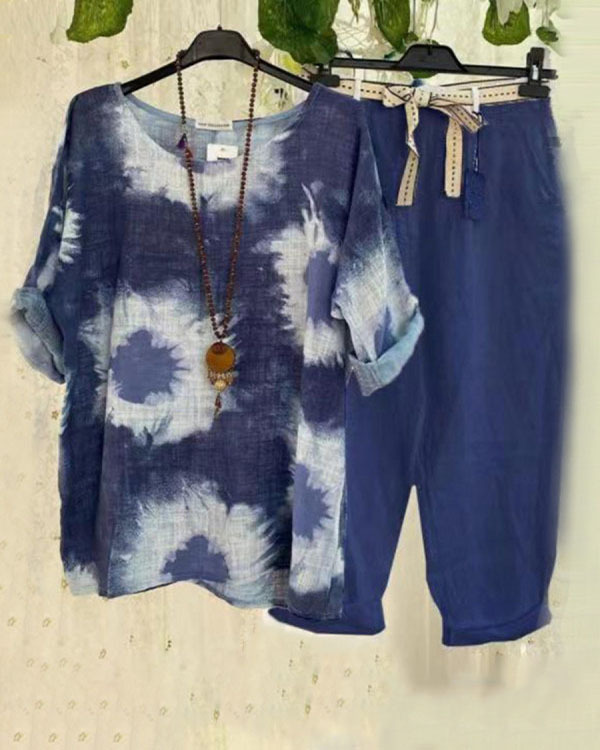Casual Tie Dye Two Piece Suit