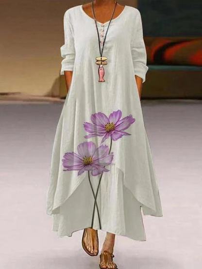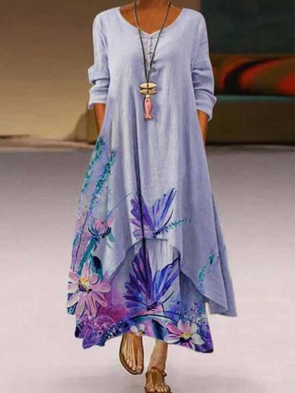 Floral Print Hem Irregular Sleeveless Dress