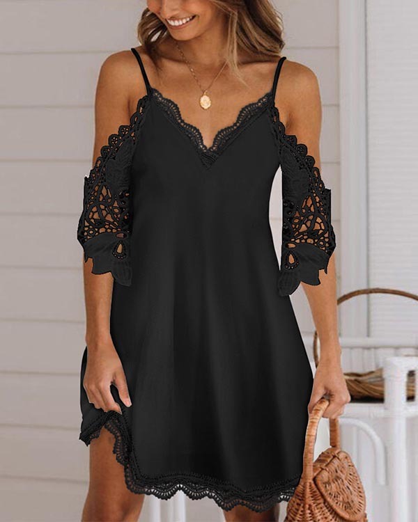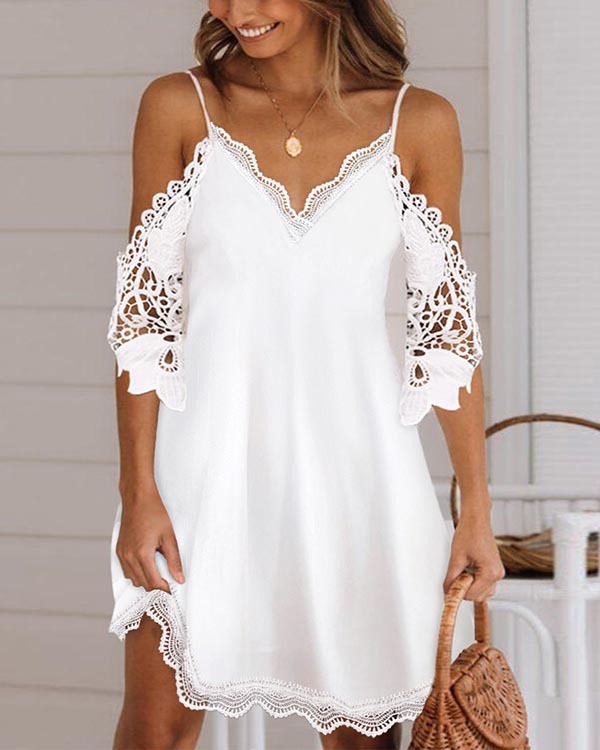 Holiday Suspender Lace Stitching Casual Dress