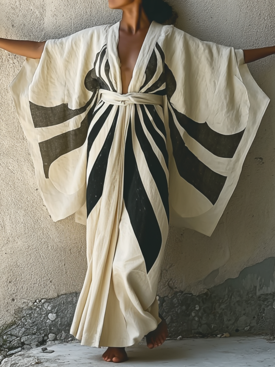 Chic Design: Features traditional kimono-inspired sleeves and a graceful silhouette with a matching belt for a flattering fit.