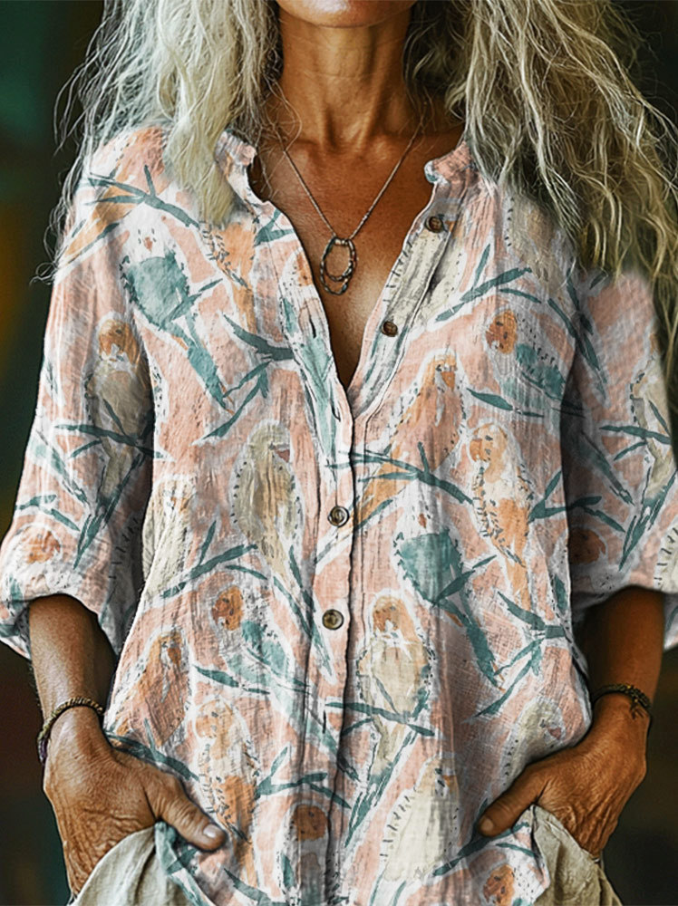 Women's Art Painting Funny Animal Hippie Retro Print Long Sleeve Shirt