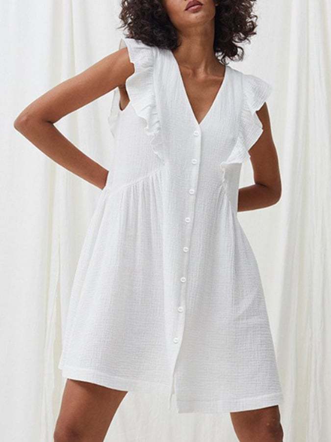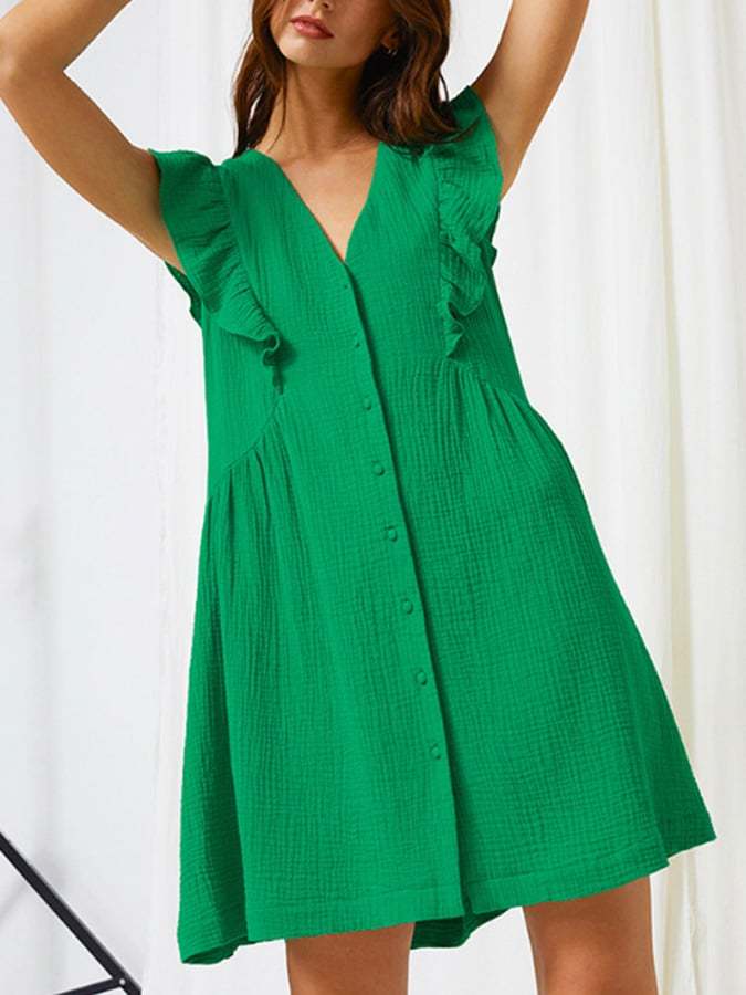 Women's Casual Cotton Linen Short-sleeved V-neck Dress