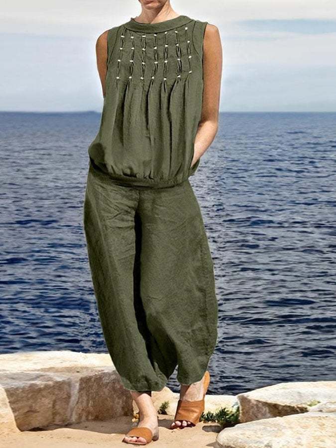 Women'S Cotton And Linen Casual Two-Piece Set