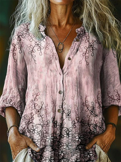 Women's Floral Tattoo Pattern Art Print Casual Cotton Linen Shirt