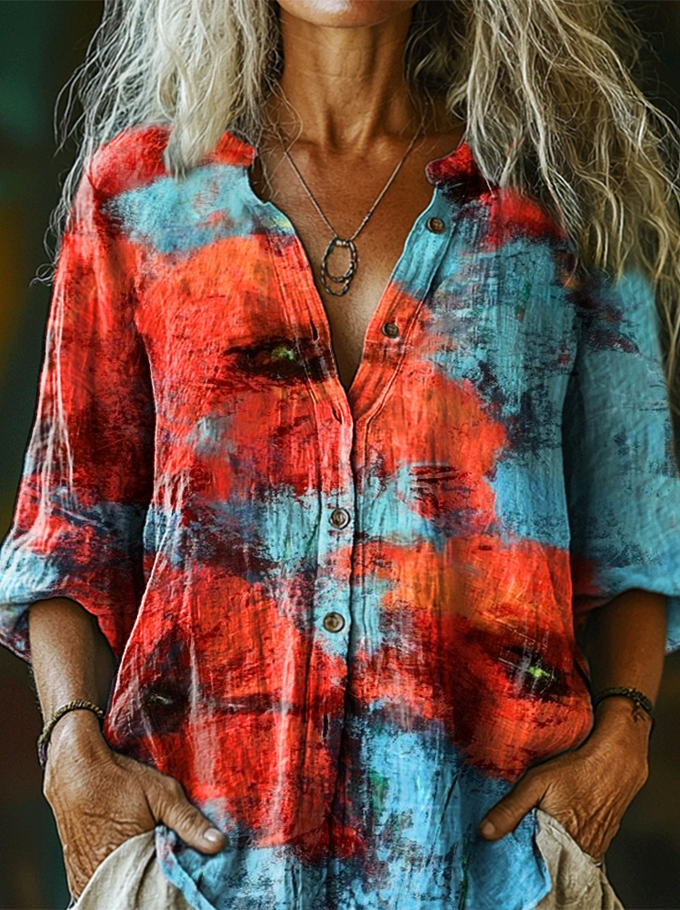 Women's Poppy Graffiti Art Pattern Print Casual Cotton Linen Shirt