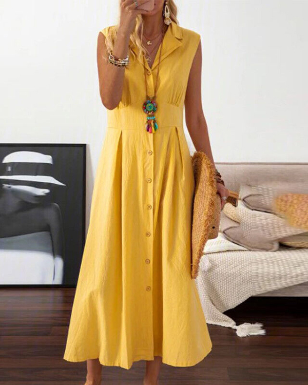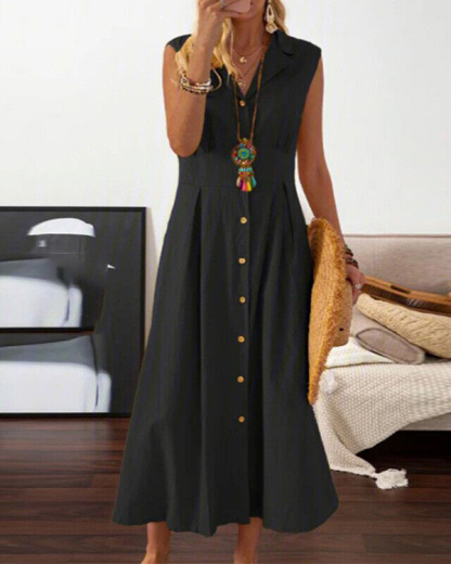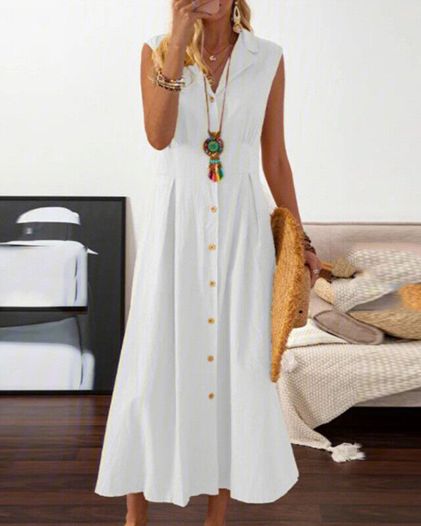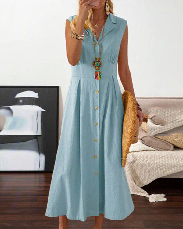 Women's Sleeveless Button Solid Casual Long Dress