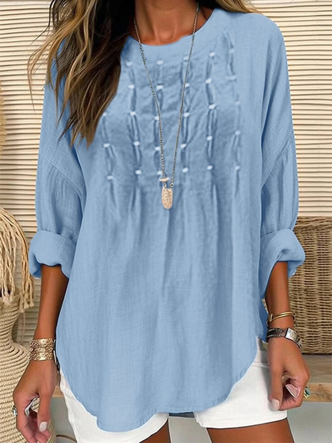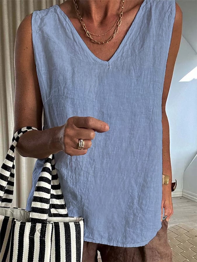 Women'S Cotton And Linen Solid Color Casual Tops