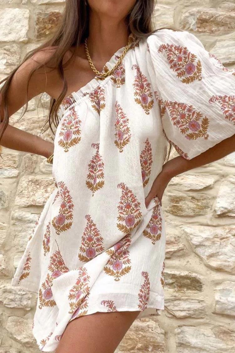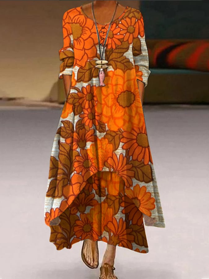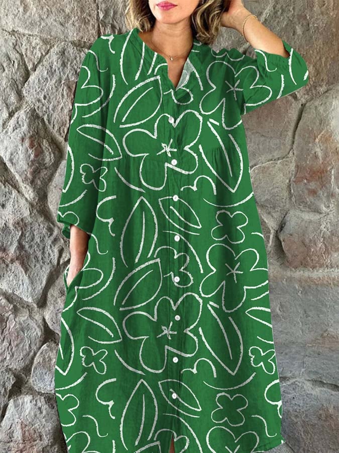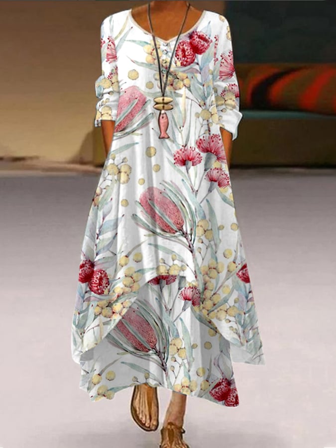 Women's Art Botanical Floral Print Single Breasted Dress