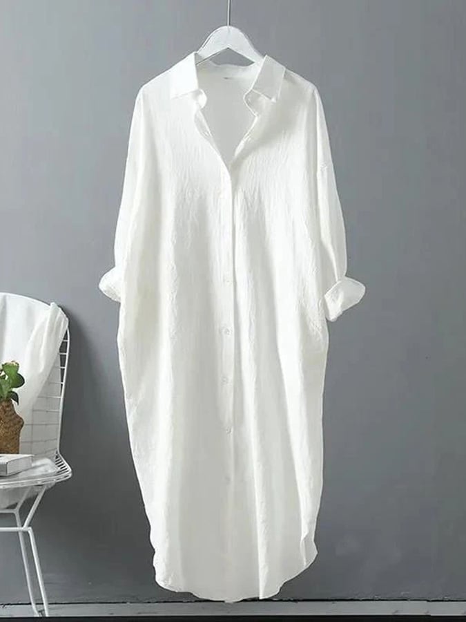Casual Plain Single Breasted Pocket Long Sleeve Loose Maxi Dress