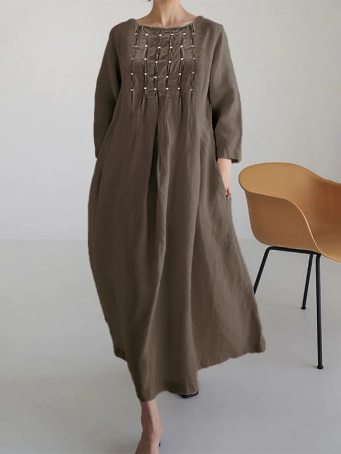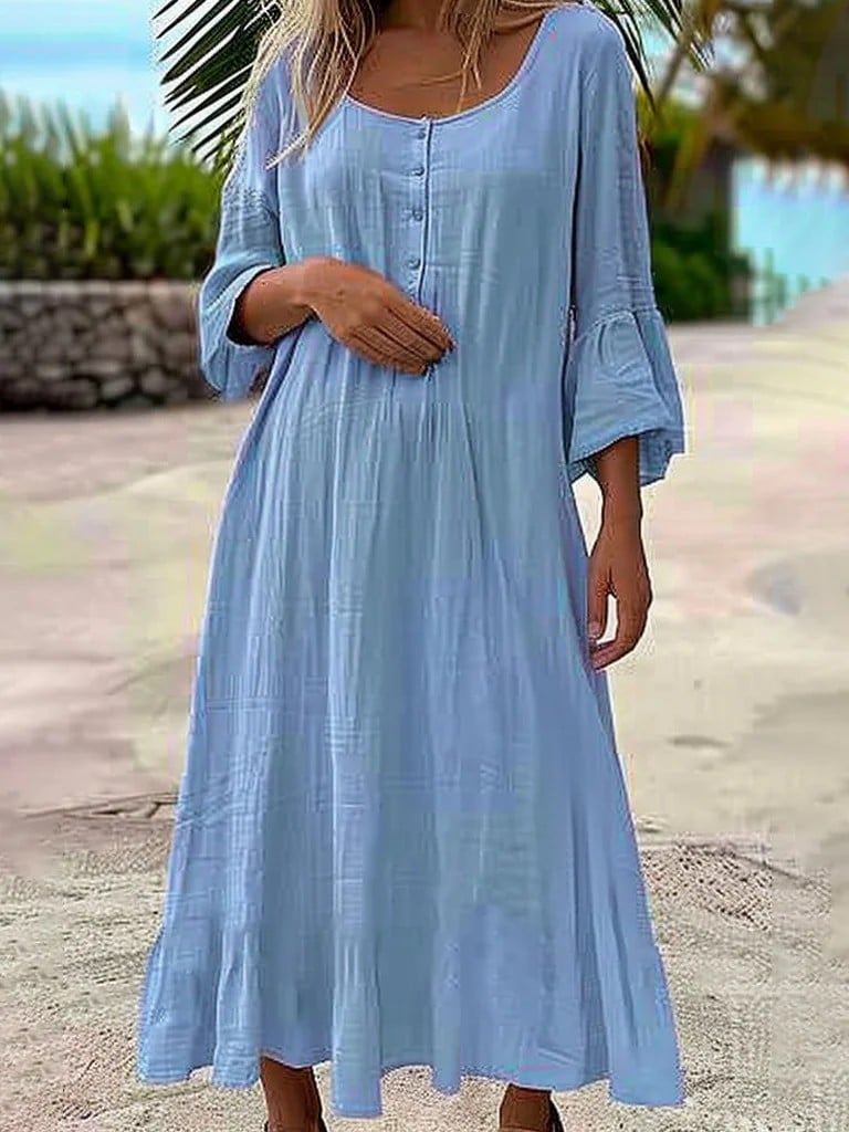 Women's Linen Solid Color Casual Maxi Dress