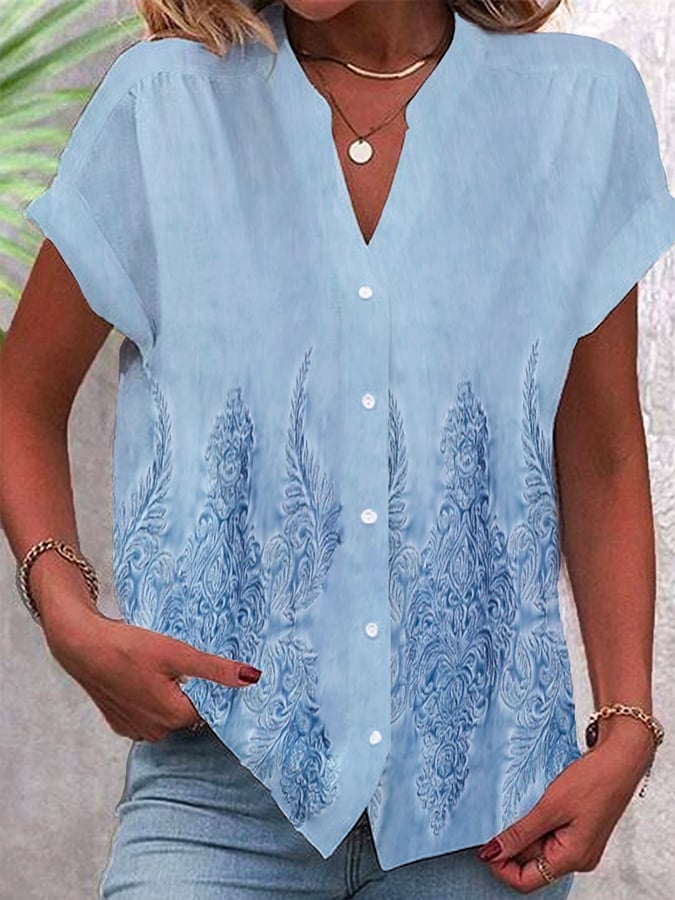 Women's Chiffon Vintage Floral Print Casual V-Neck Shirt