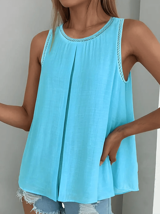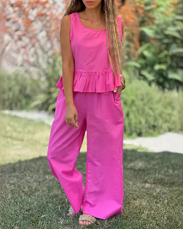 Cotton and Linen Solid Color Sleeveless Top and Wide-leg Trousers Two-piece Set