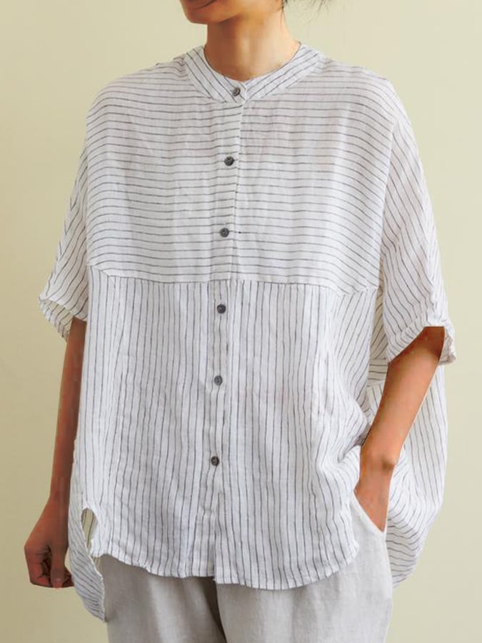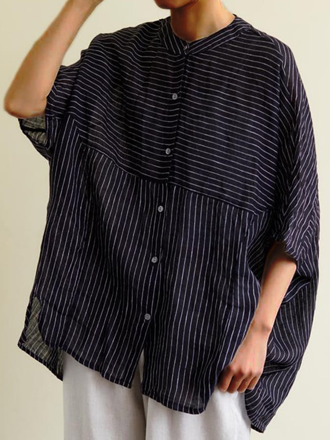 Women's Cotton And Linen Loose Striped Casual Blouse