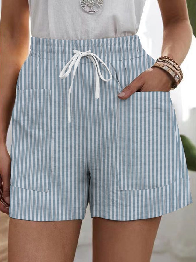 Women's Solid Color Elastic Waist Pocketed Shorts