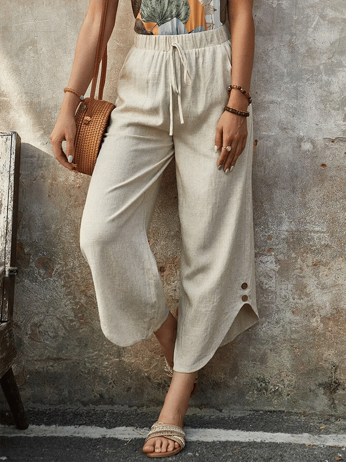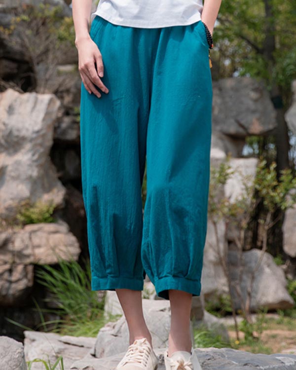 Retro Cotton and Linen Eight-point Casual Wide-leg Pants