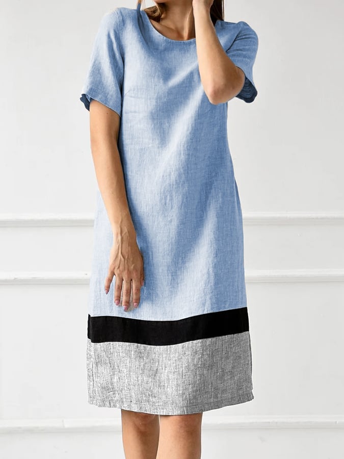 Women'S Round Neck Contrast Color Casual Dress