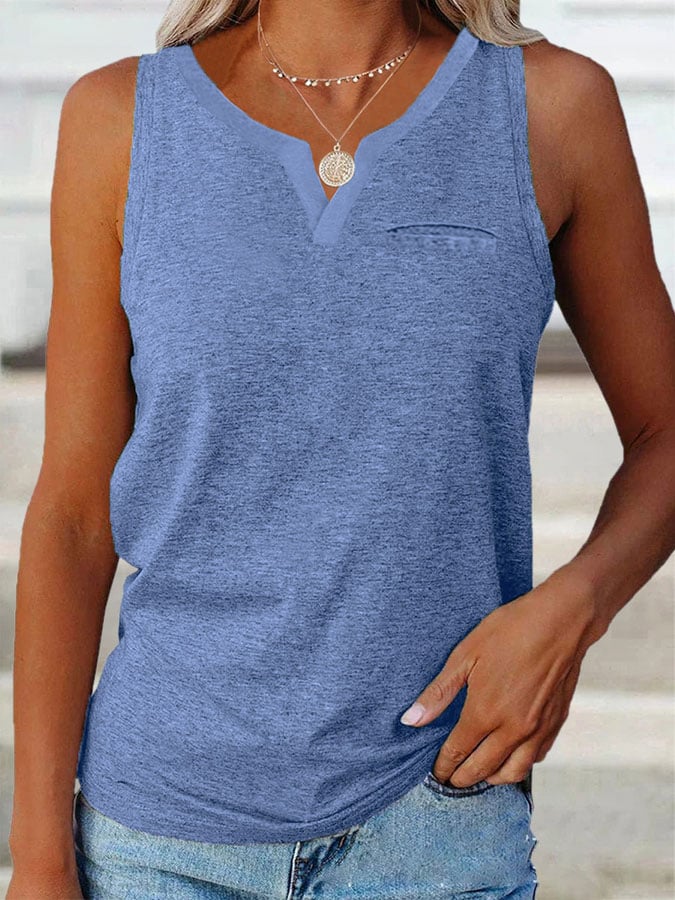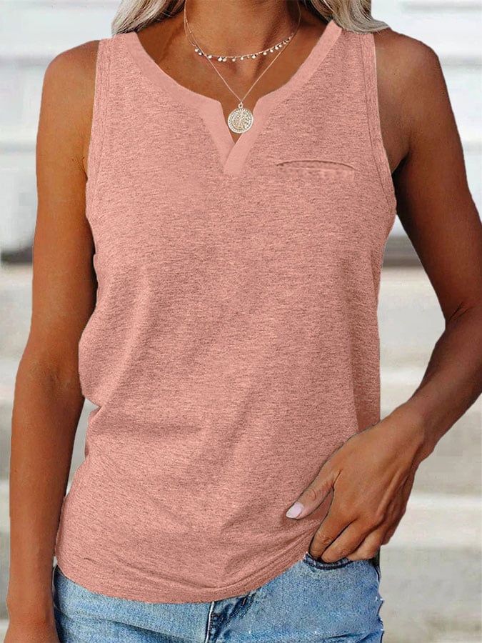 Women's Solid Color Pocket V-Neck T-Shirt