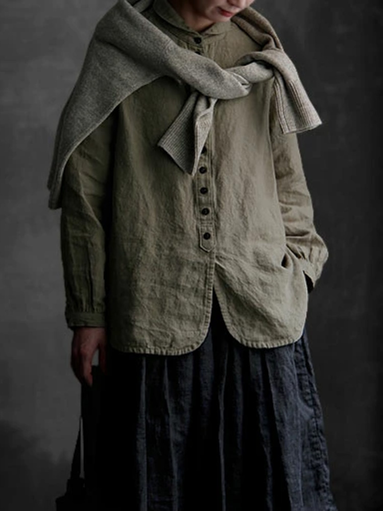 Women's Vintage Simple Linen Blend Long Sleeve Shirt