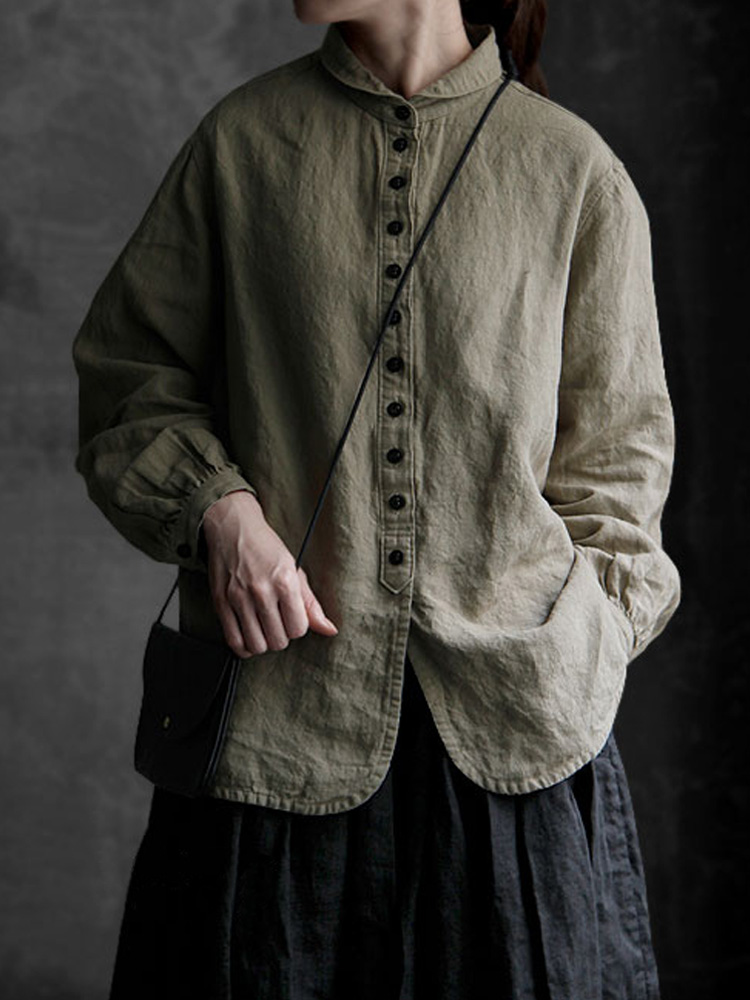 Women's Simple Solid Color Linen Blend Vintage Shirt