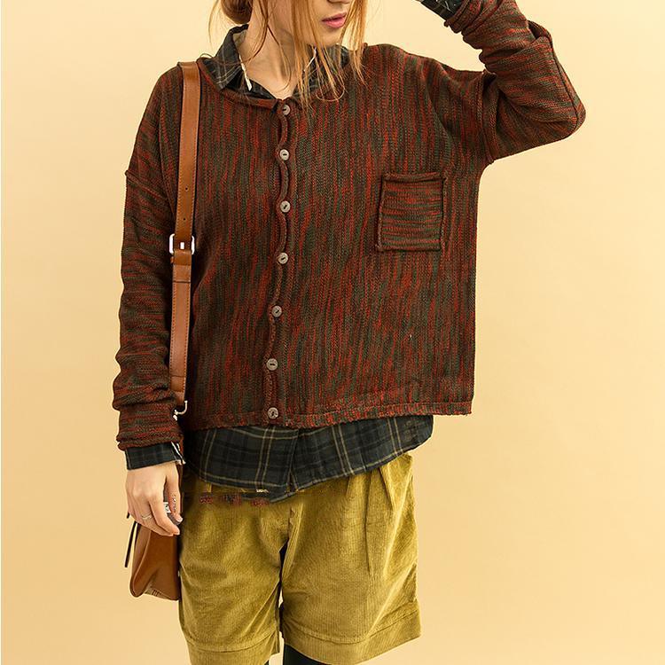 Red sweaters back pocket knitted cardigan short sweater coat long sleeve