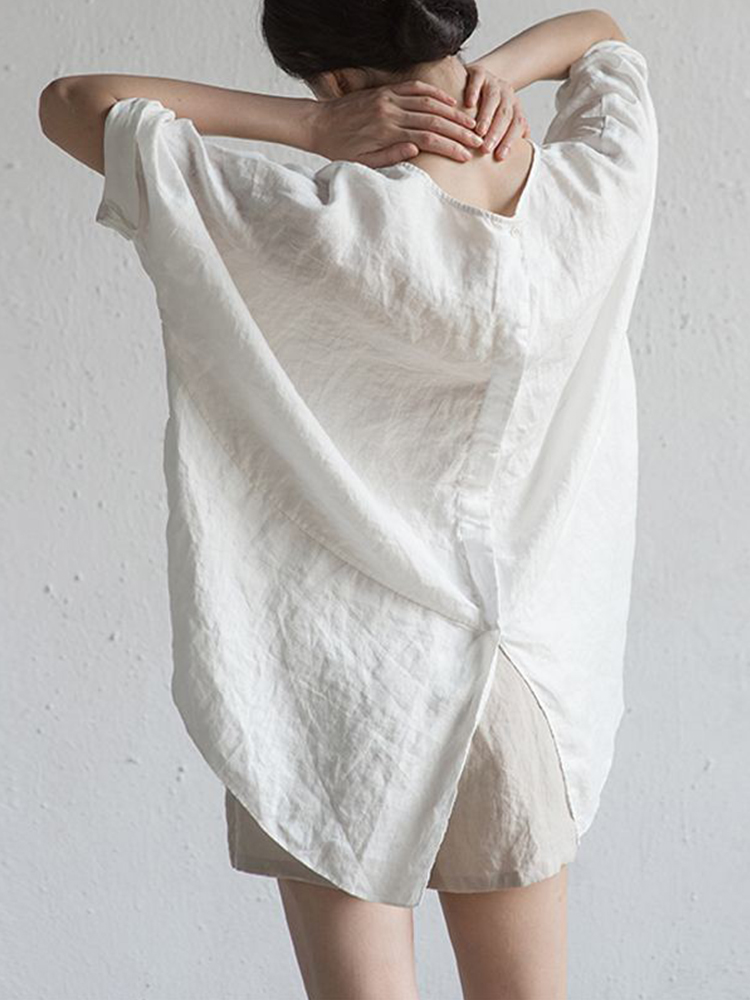Solid Color Simple Cotton And Linen Lapel Shirt
