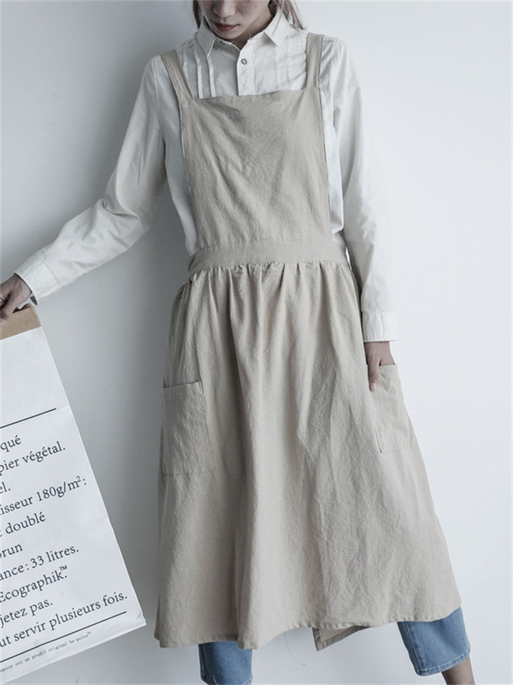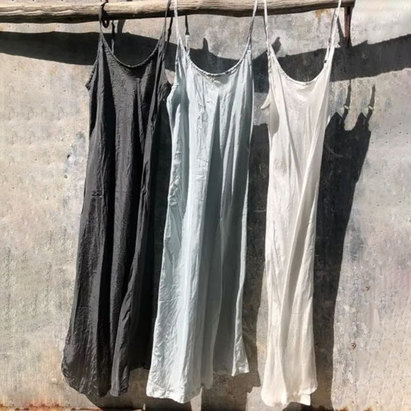 Vintage Solid Color Cotton Linen Comfy Midi Dress