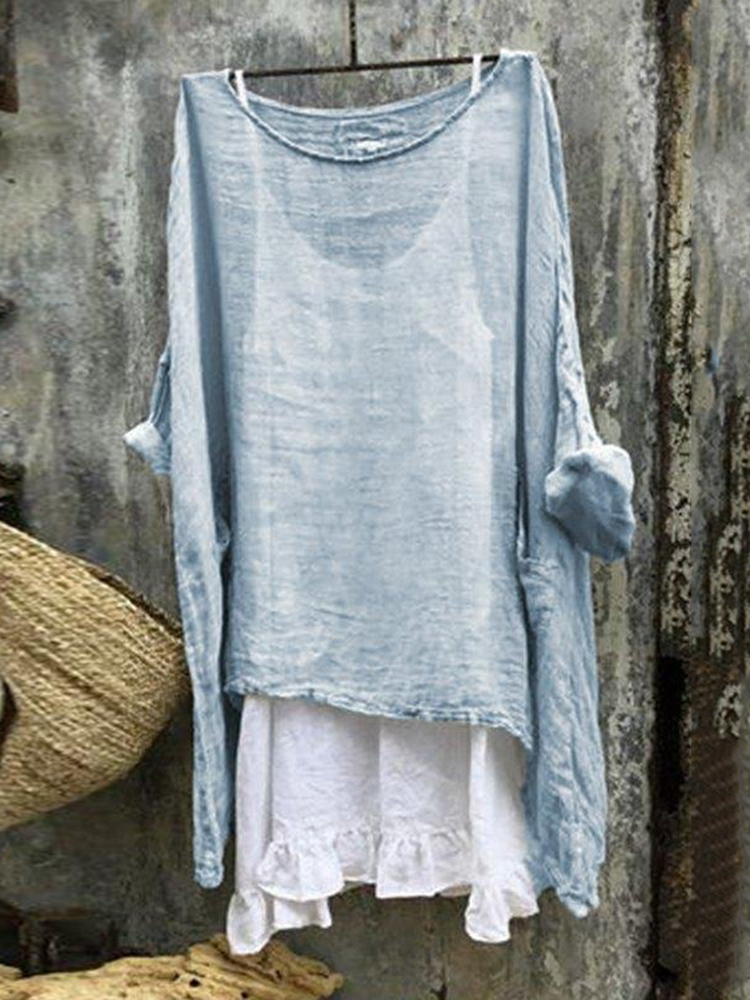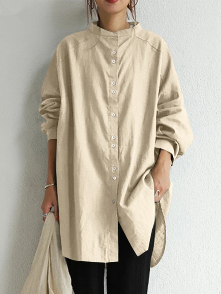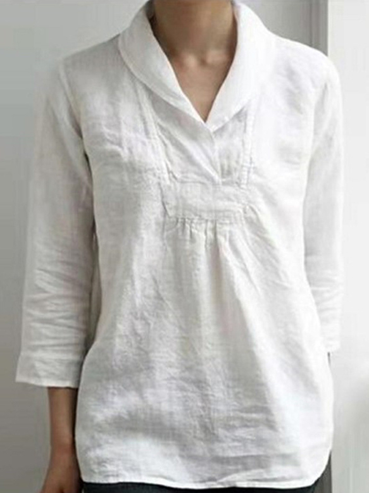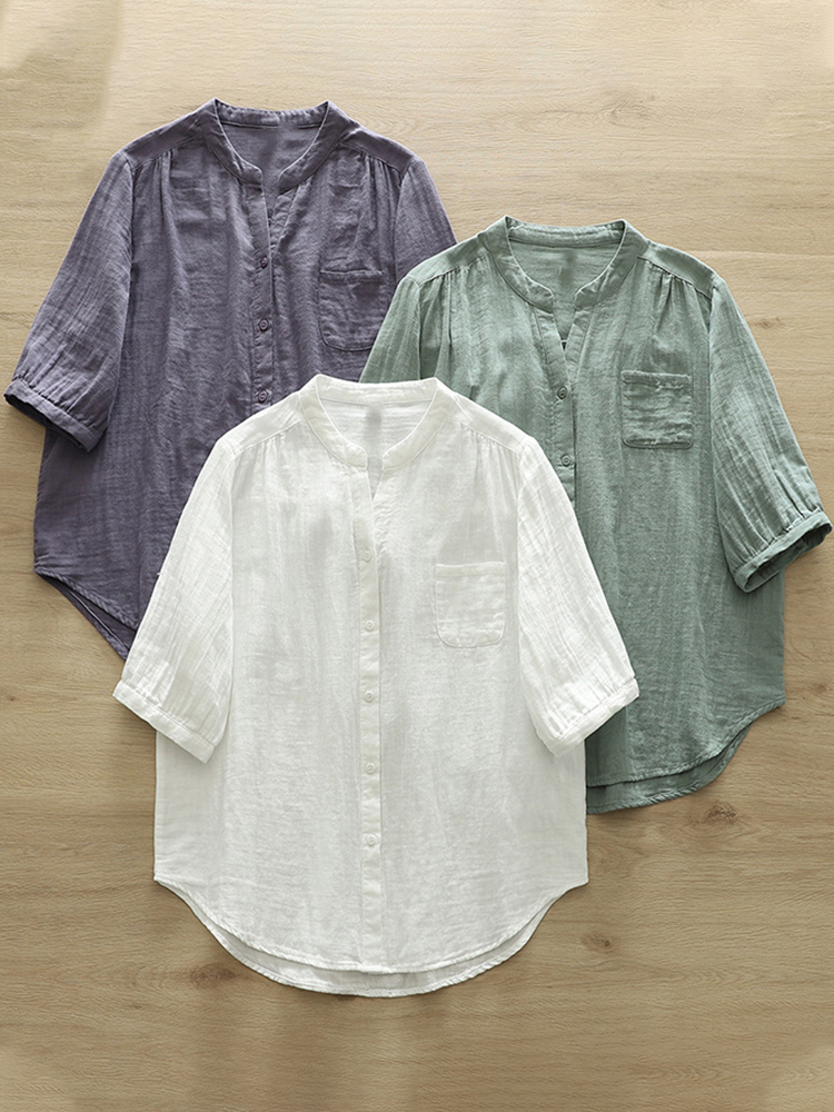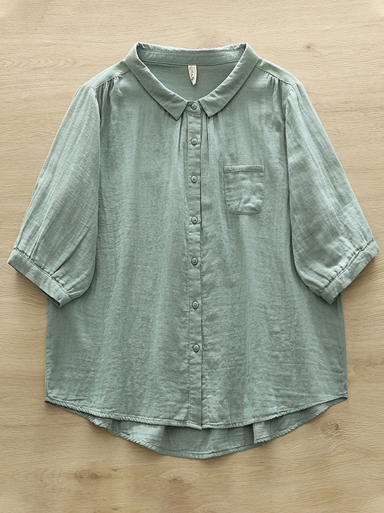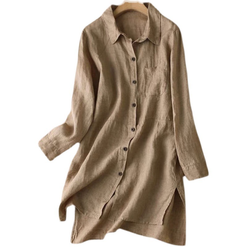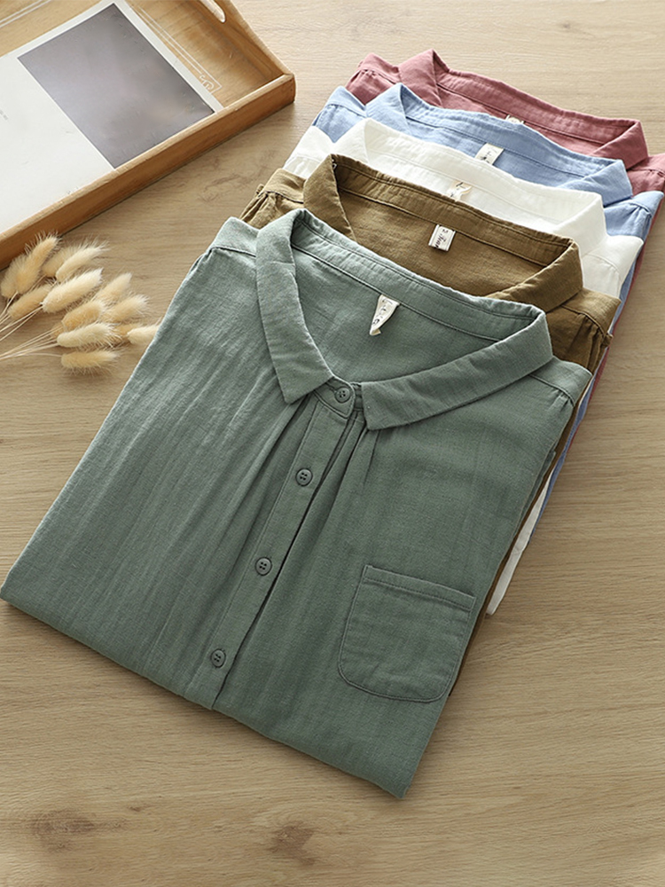 Women's Simple Solid Color Linen Blend Vintage Shirt