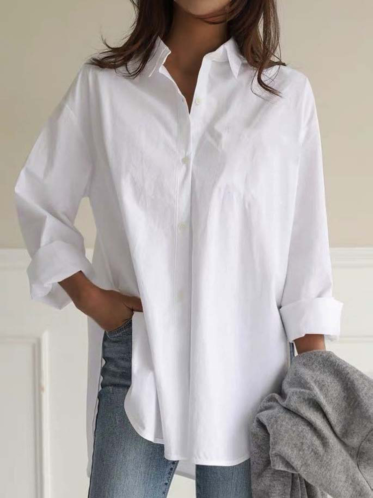 Solid Color Comfortable Casual Loose Fitting Long Sleeved Shirt