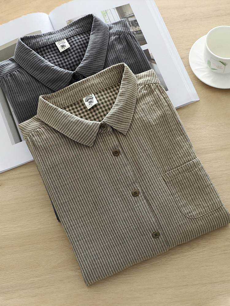 Vintage Lapel Plain Button Down Casual Shirt
