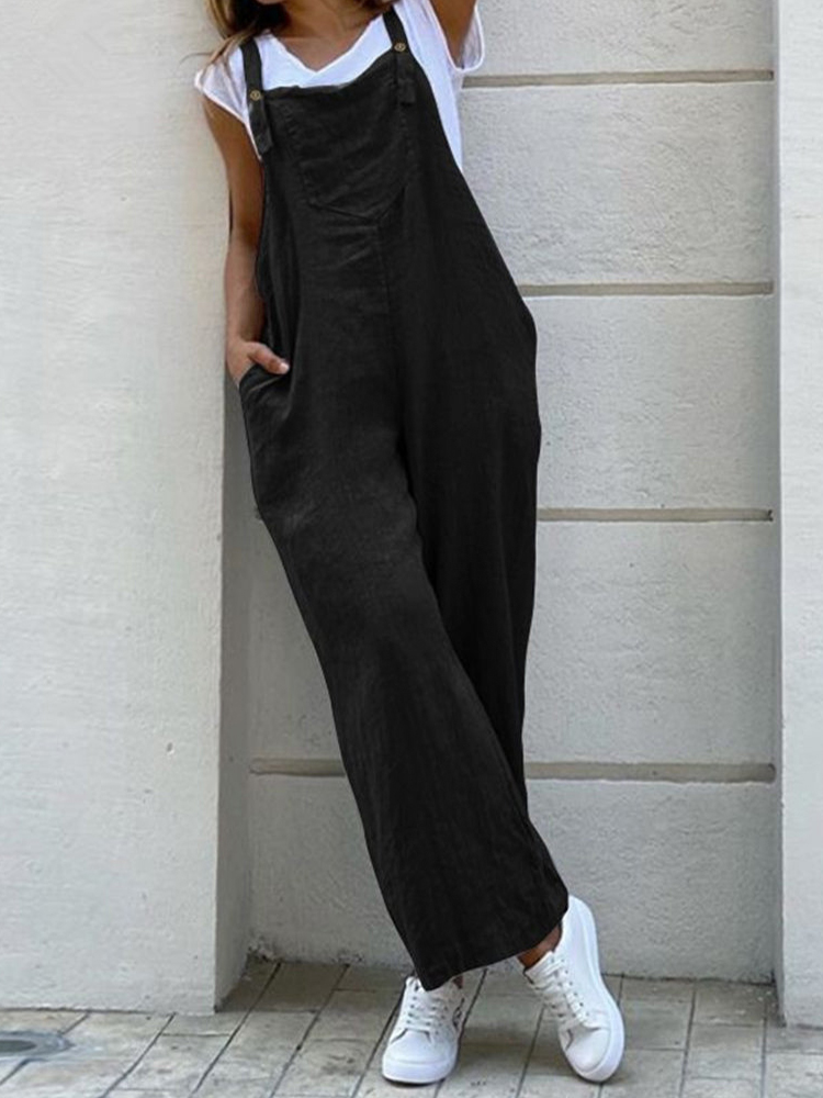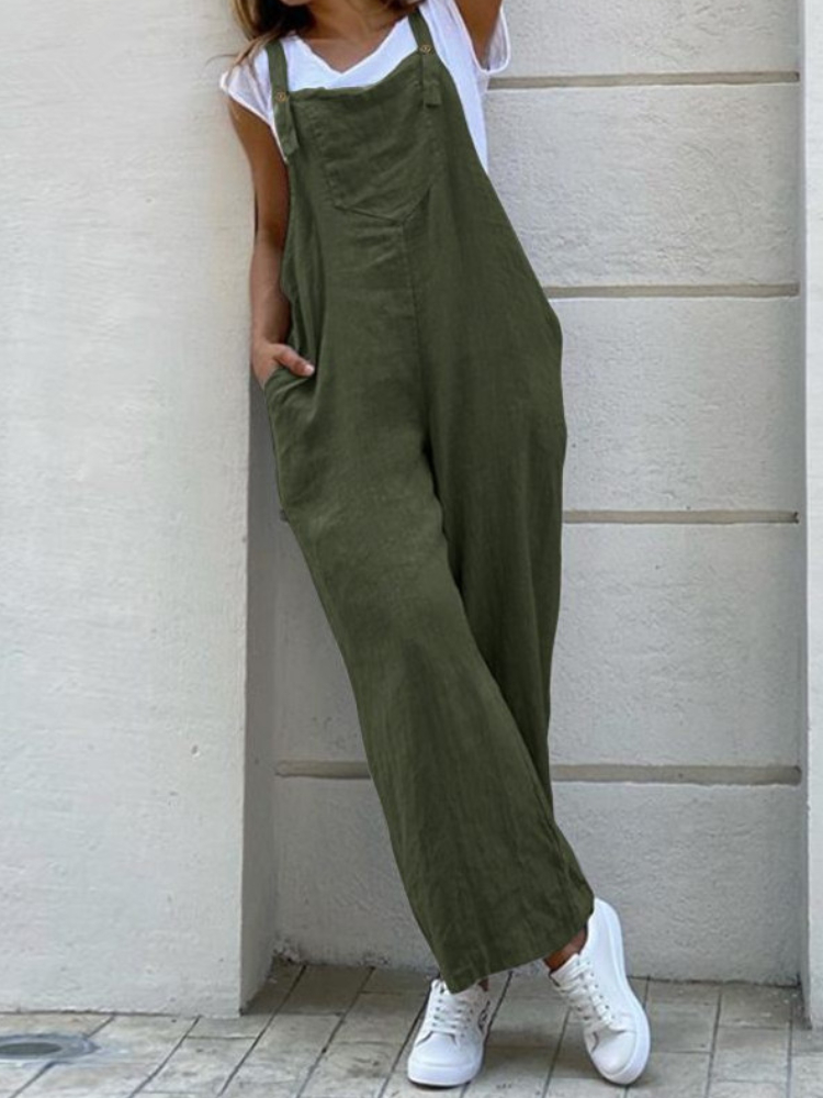 Loose Fit Patch Pocket Linen Cotton Jumpsuit