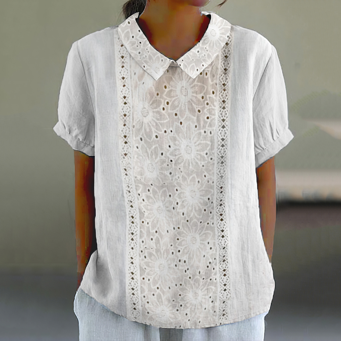 Retro Floral Lace Art Short Sleeve Lapel Shirt