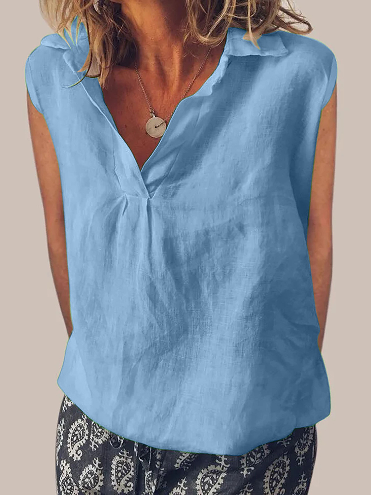 Vintage Solid Color V Neck Cotton Linen Comfy Shirt