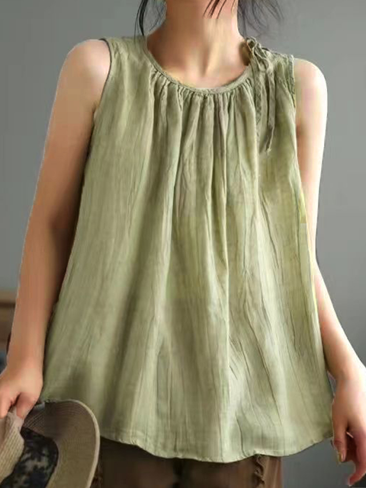 Vintage Layered Pleated Flowy Linen Blend Tank Top