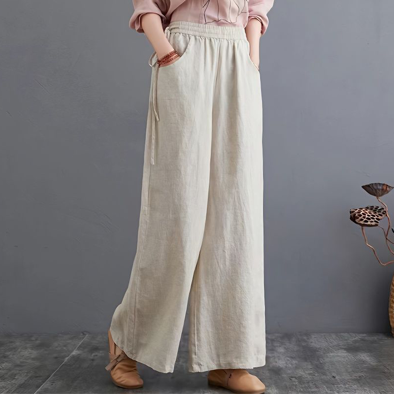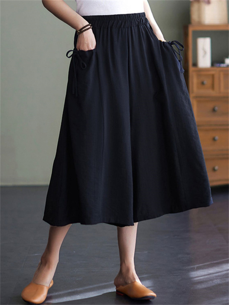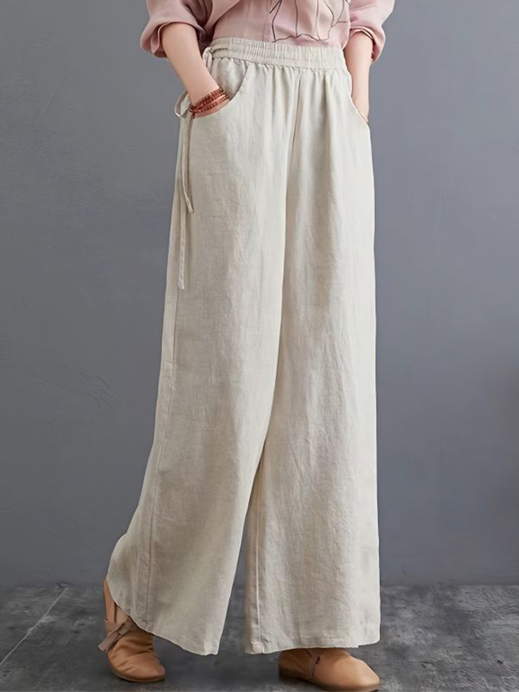 Vintage Lace Up Cotton Linen Pocket Comfy Pants