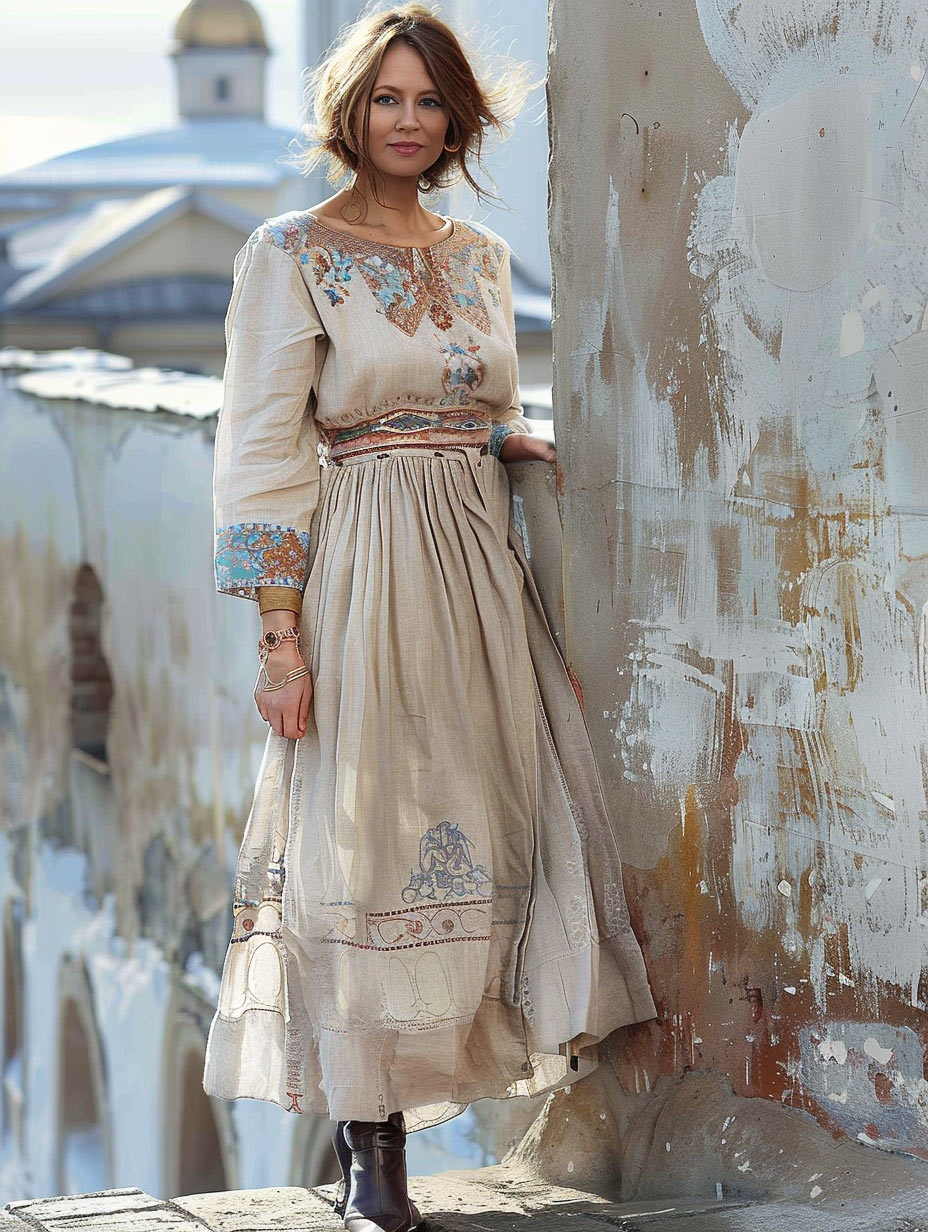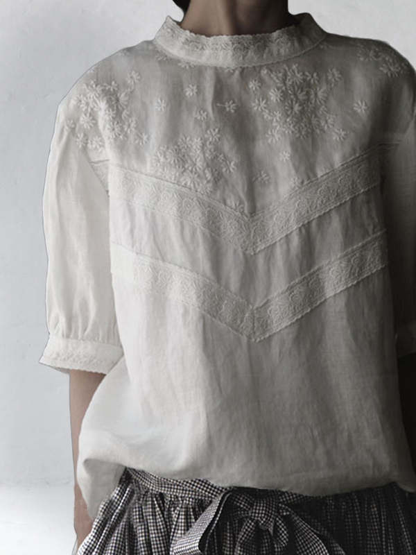 Women's Embroidery Pattern Linen Blend Comfort Shirt