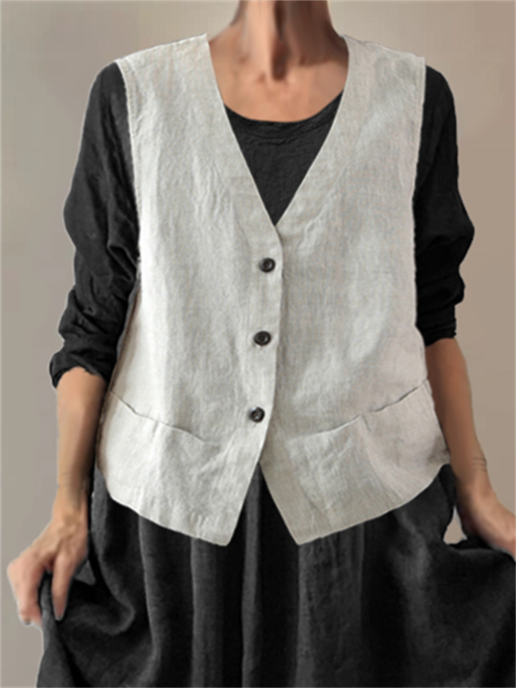 Vintage Pocket Button Down Linen Cotton Comfy Shirt
