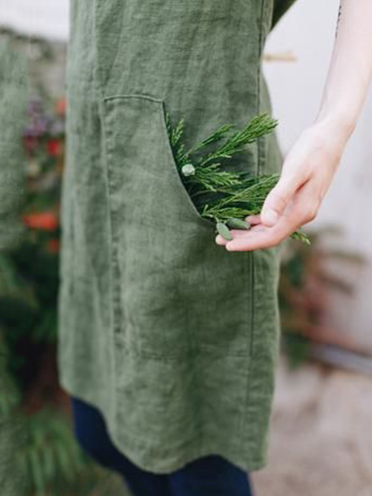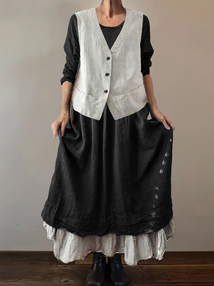 Vintage V Neck Split Linen Cotton Comfy Maxi Dress