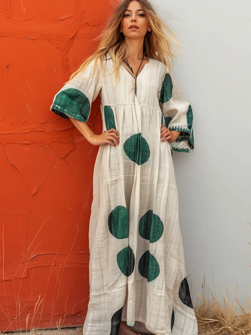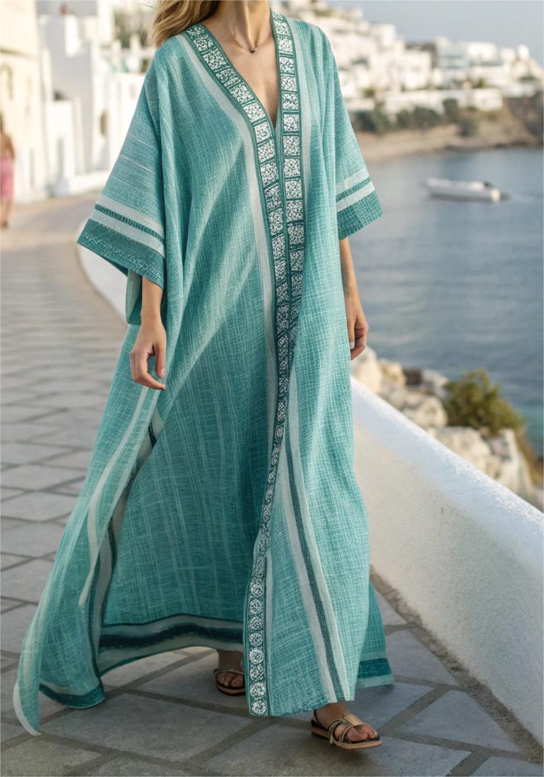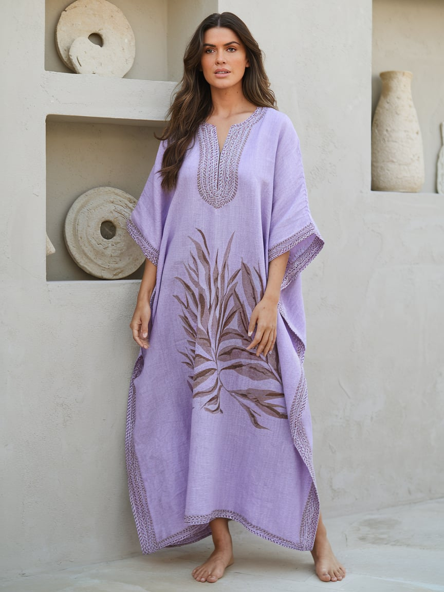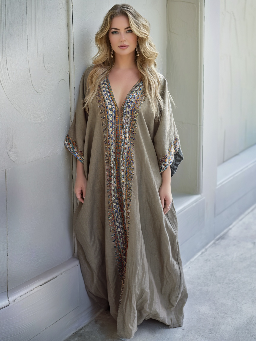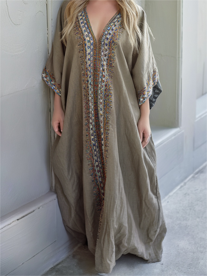Contton & Linen Long Sleeve Kaftan Maxi Dress