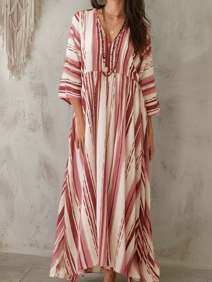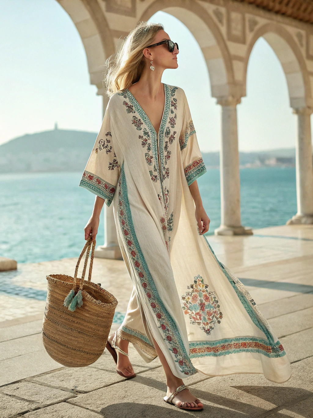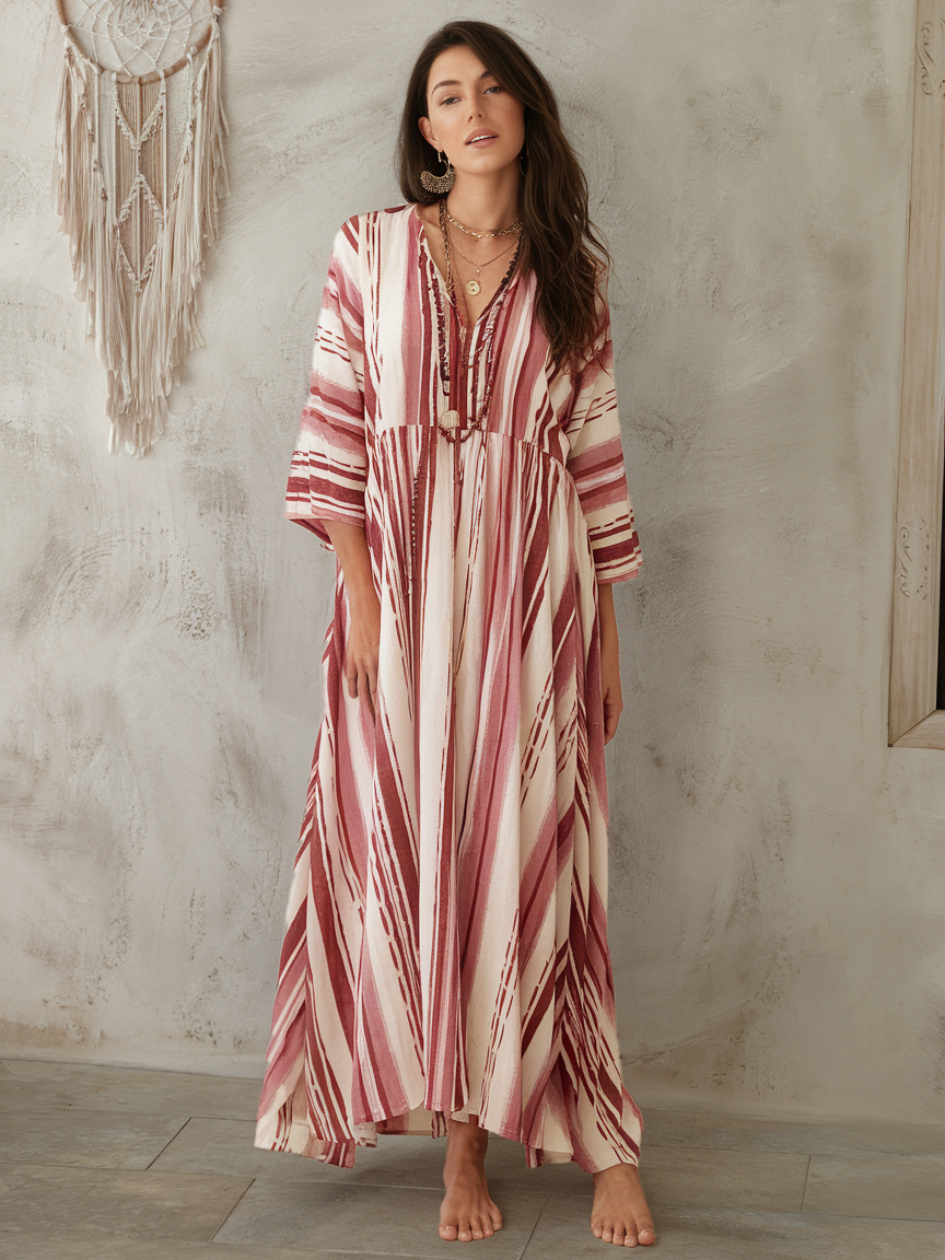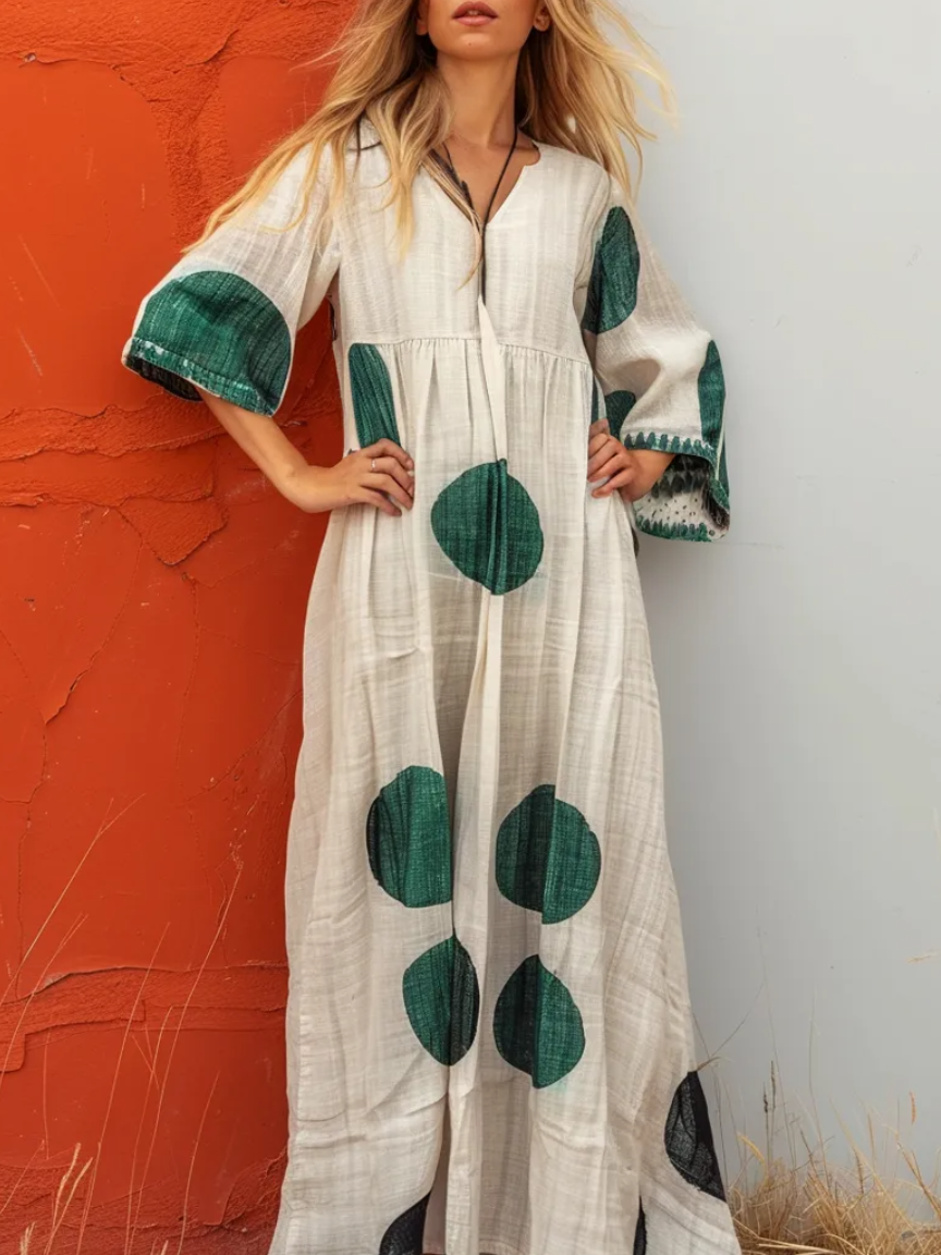 Contton & Linen Long Sleeve Kaftan Maxi Dress