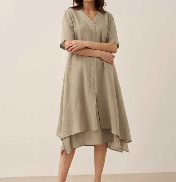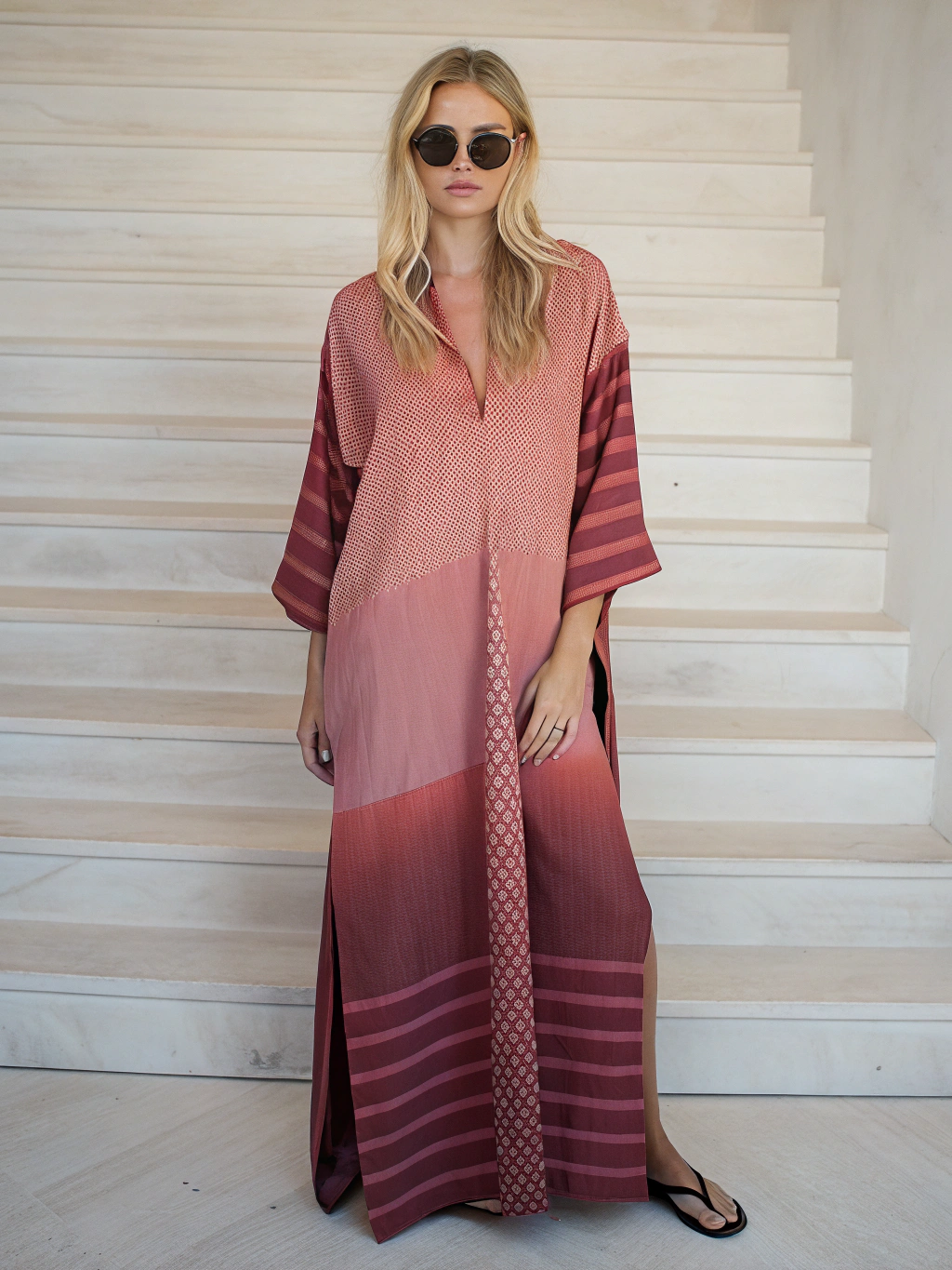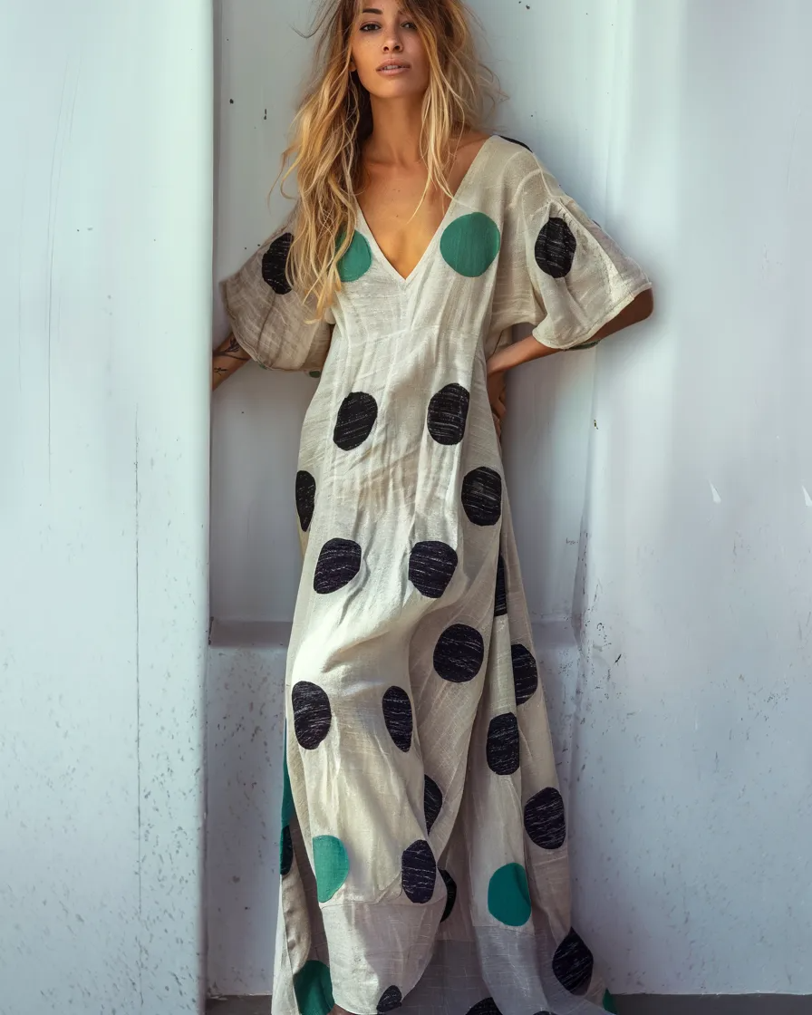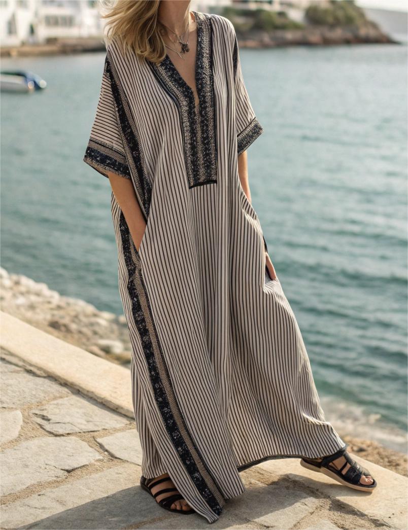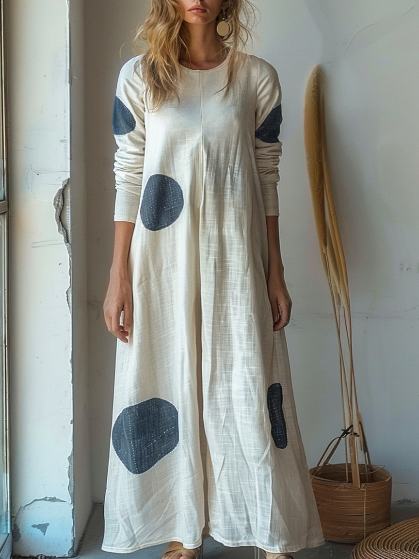 Contton & Linen Long Sleeve Kaftan Maxi Dress
