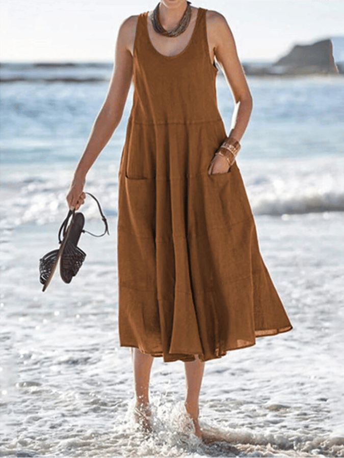 Women's Resort Style Solid Color Swing Cotton Linen Sling Dress