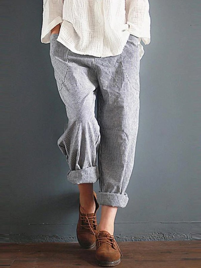 Women's Comfortable Cotton Linen Cropped Straight Casual Wide Leg Pants