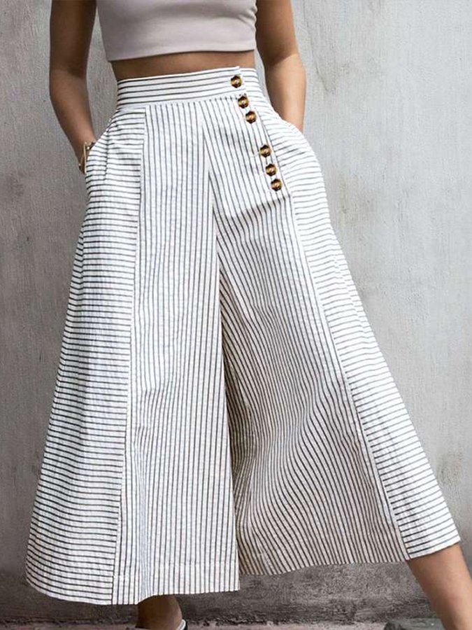 Women's Cotton and Linen Double Drawstring Wide Leg Pants