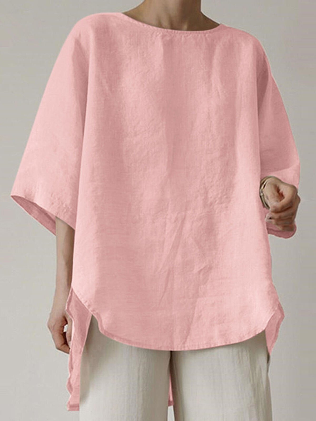 Women's Casual Pure Color Half Sleeve Cotton And Linen Shirt