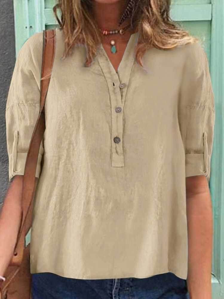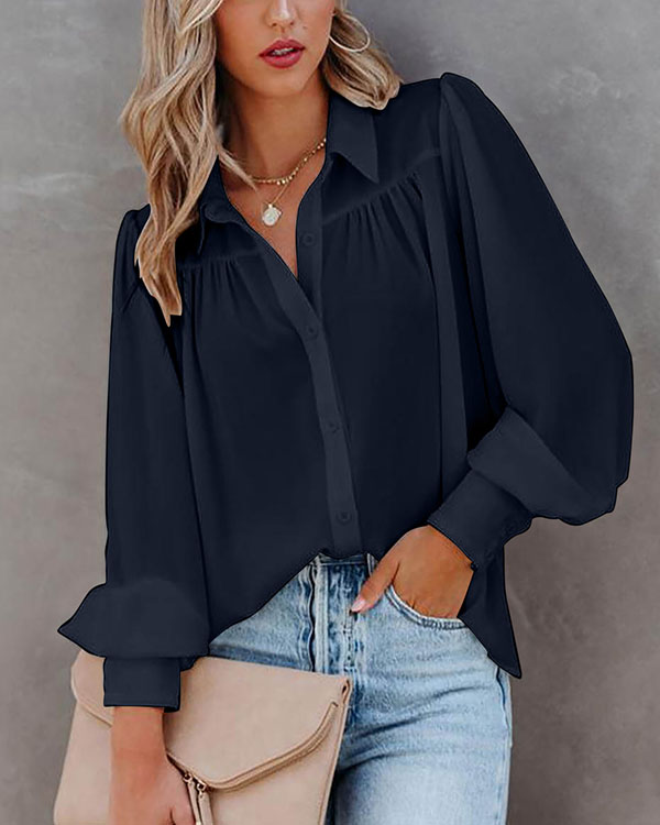 Solid Color V-neck Long-sleeved Wild Casual Shirt